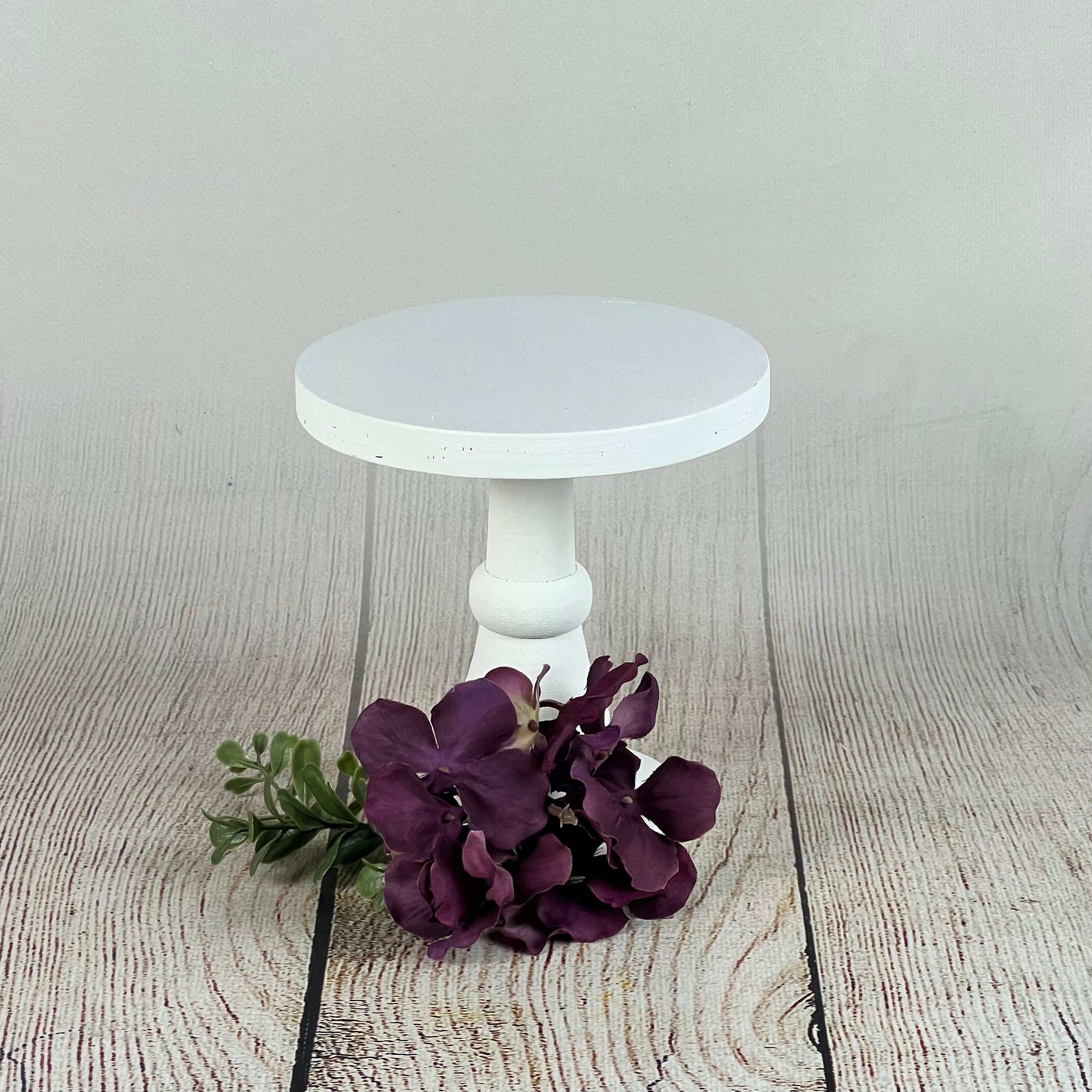 Rustic Cake Stand/Nightstand - 6.5in Tall - White -