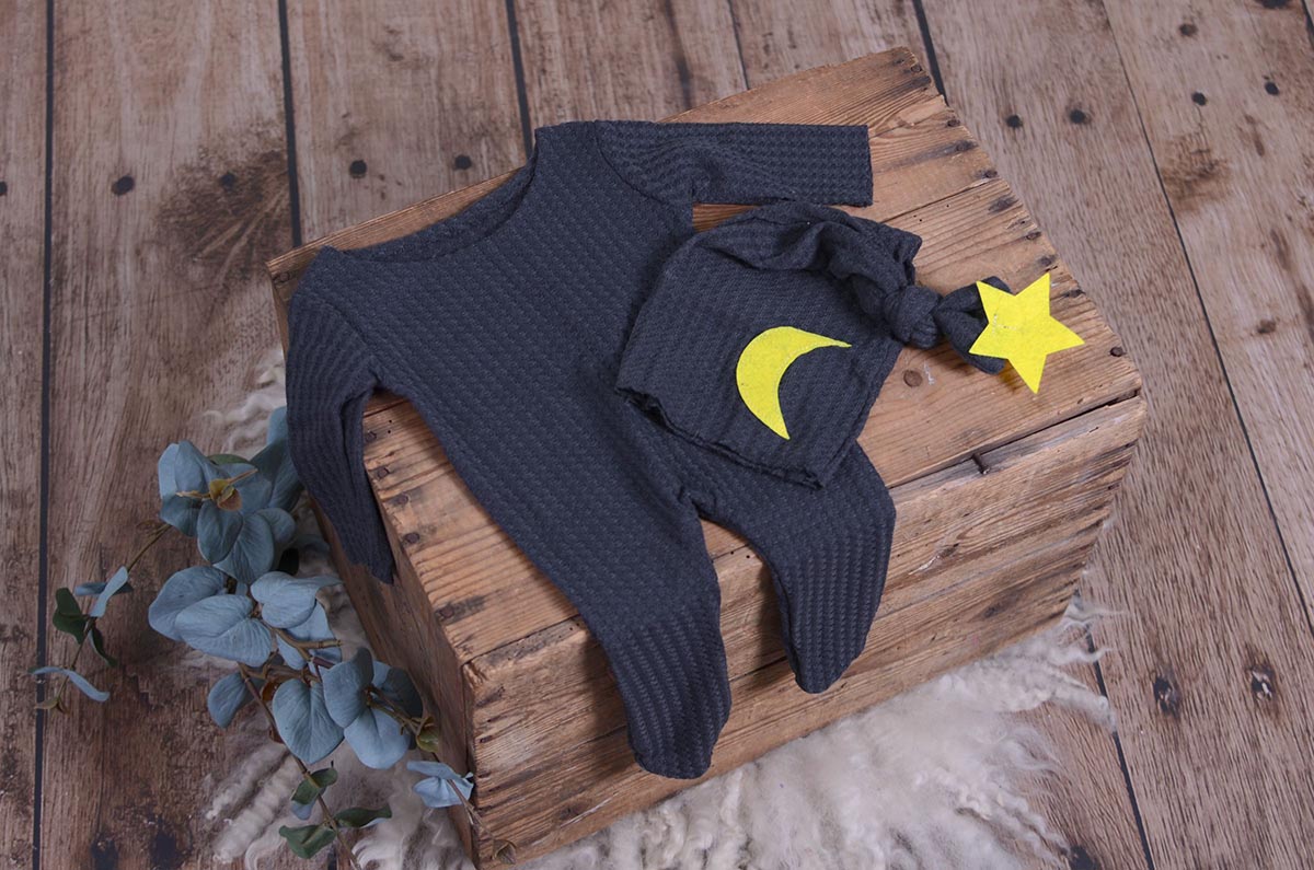 Footed Pajamas & Hat - Perforated - Navy -