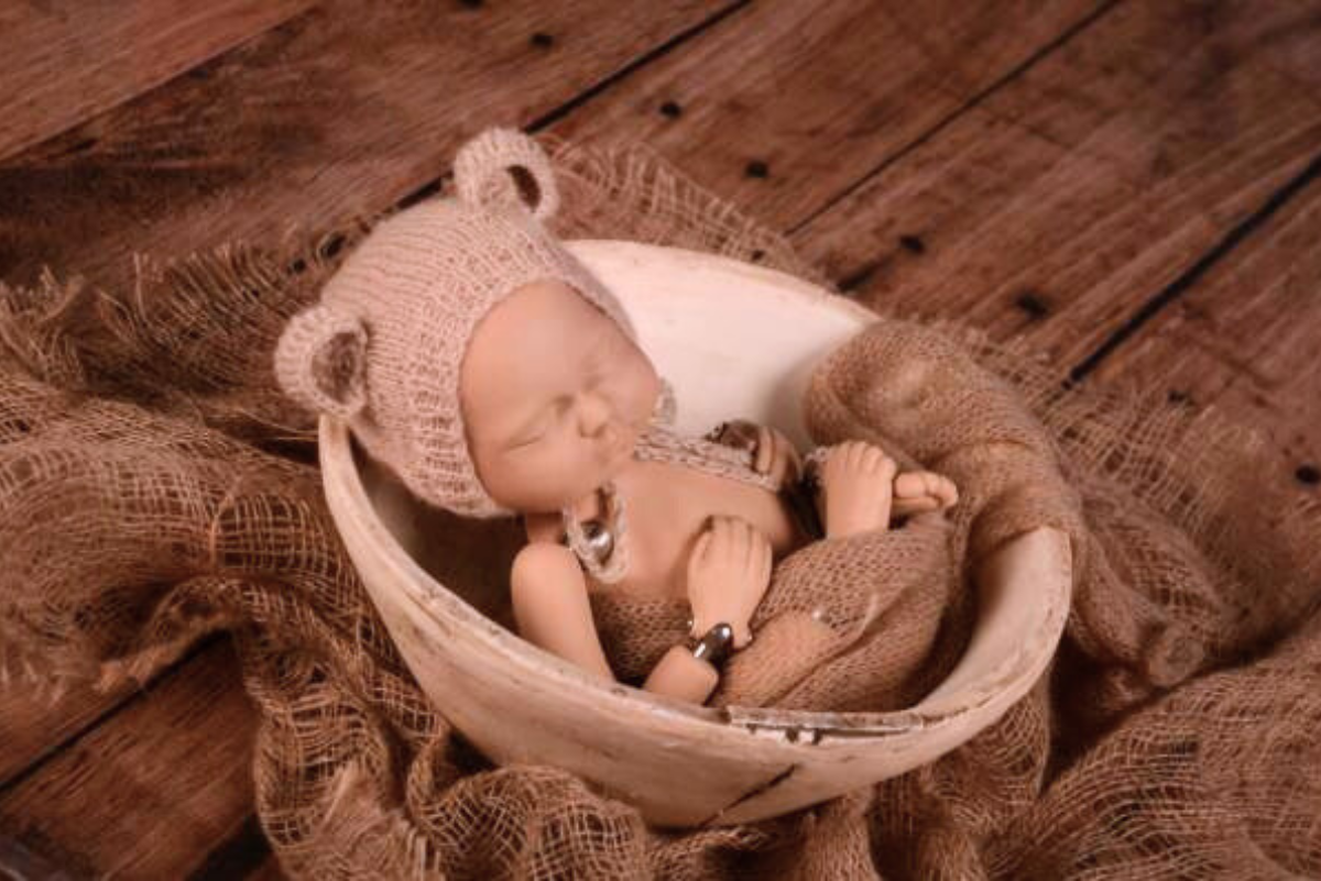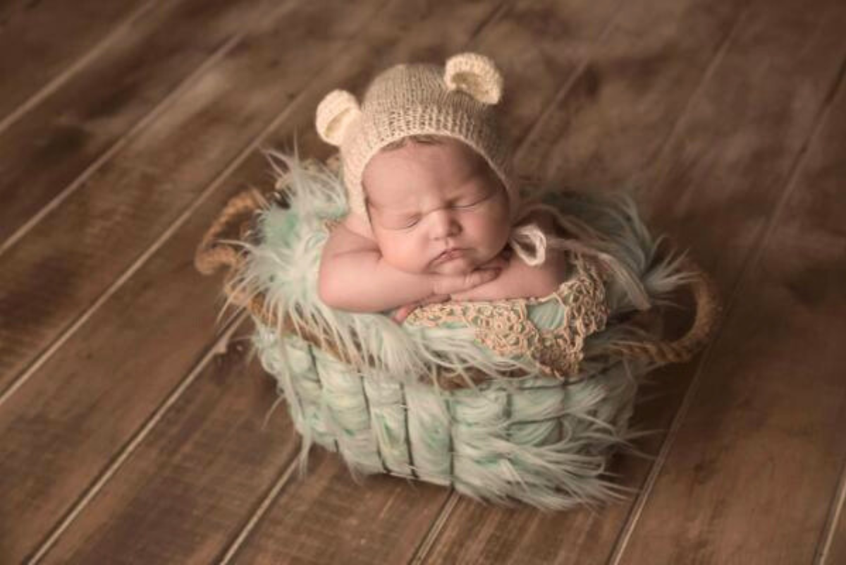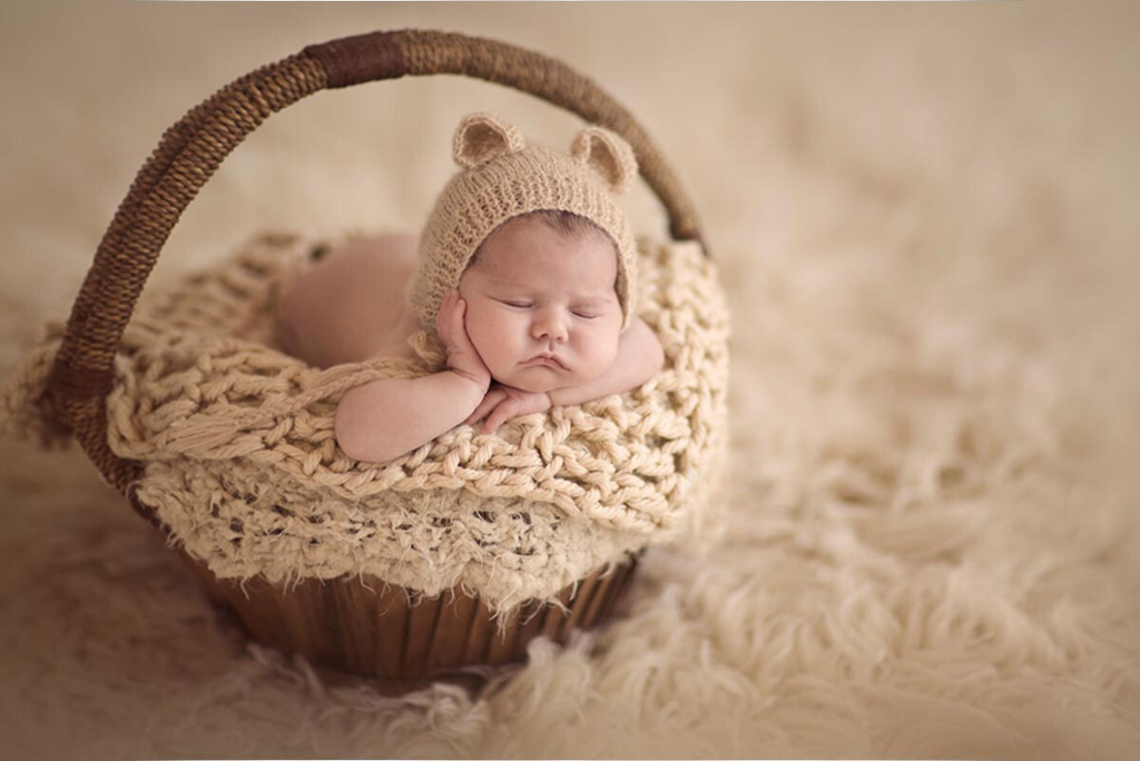 Thoughtfully crafted to embrace a newborn's head, this bonnet ensures comfort while providing an irresistibly cute look. It’s a perfect fit for capturing peaceful, idyllic baby portraits. Suitable for infants up to 3 months old, its plush fabric and charming ear details make it a precious addition to any session, adding a gentle touch of whimsy and warmth.