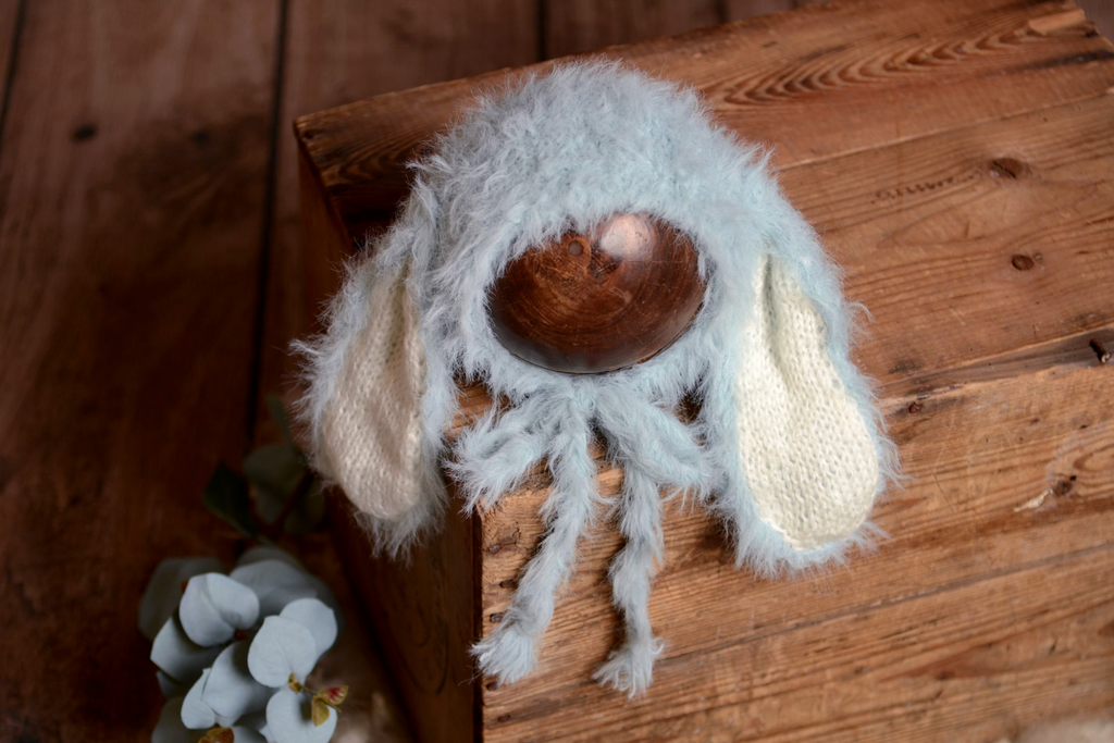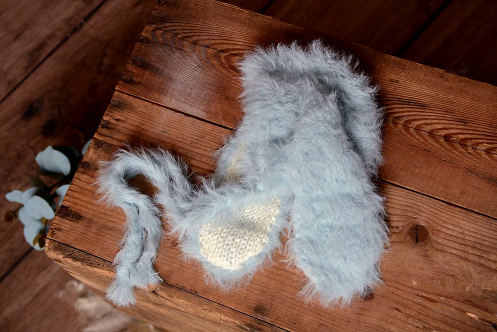 Imagine the tiny, tender head of a newborn, adorned with this fabulous, adjustable hat, complete with the most adorable rabbit ears. The 'Rabbit Ears Hat - Cloud' is more than just a prop; it's a gateway to a world of enchantment in your photographs. The versatility of this hat allows it to blend seamlessly with various outfits, giving you the creative freedom to craft diverse, captivating themes.